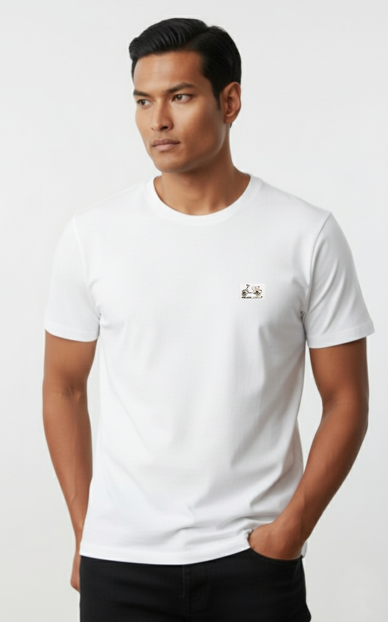 T-shirt z luksusowej bawełny Supima 100% z Vespą, ze stali nierdzewnej szczotkowanej.