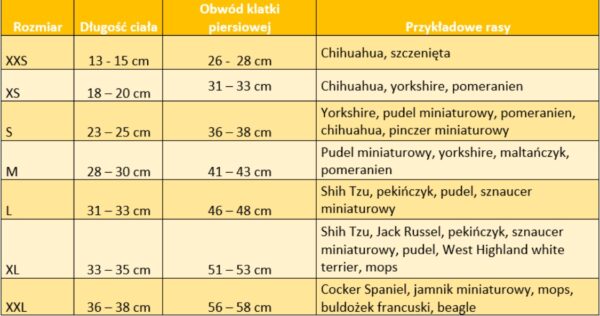 D=długość od karku do początku ogona.