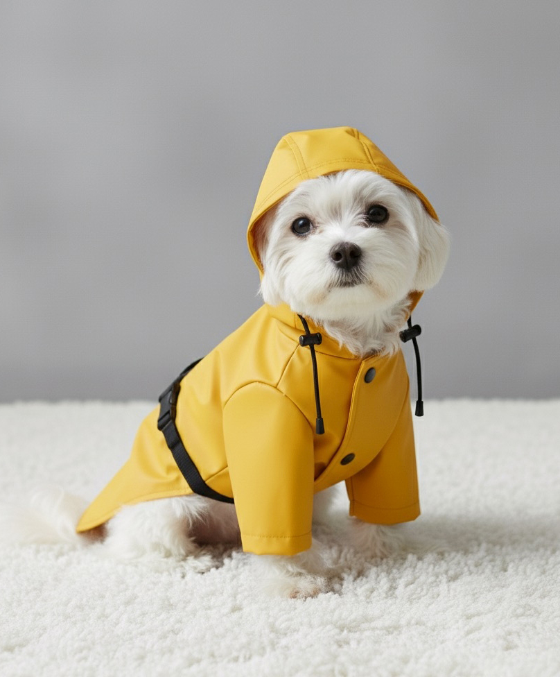 Ubranko wykonane, z materiału przeciwdeszczowego.